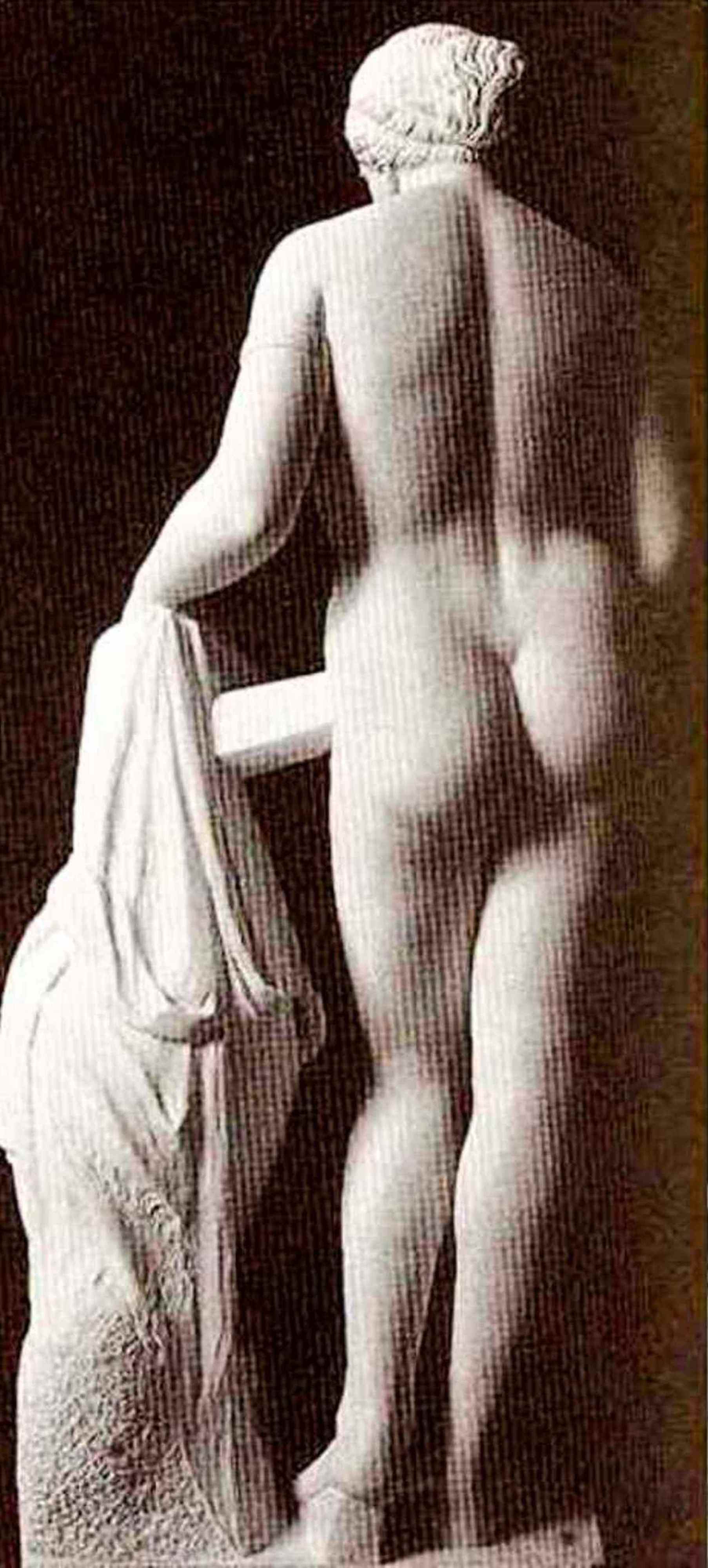 estatua de la idea divina del amor. [21] PRAXITELES podría incluso haberse permitido unir en esta escultura a los míticos predecesores que de alguna manera estaban relacionados con Afrodita: -PARIS,